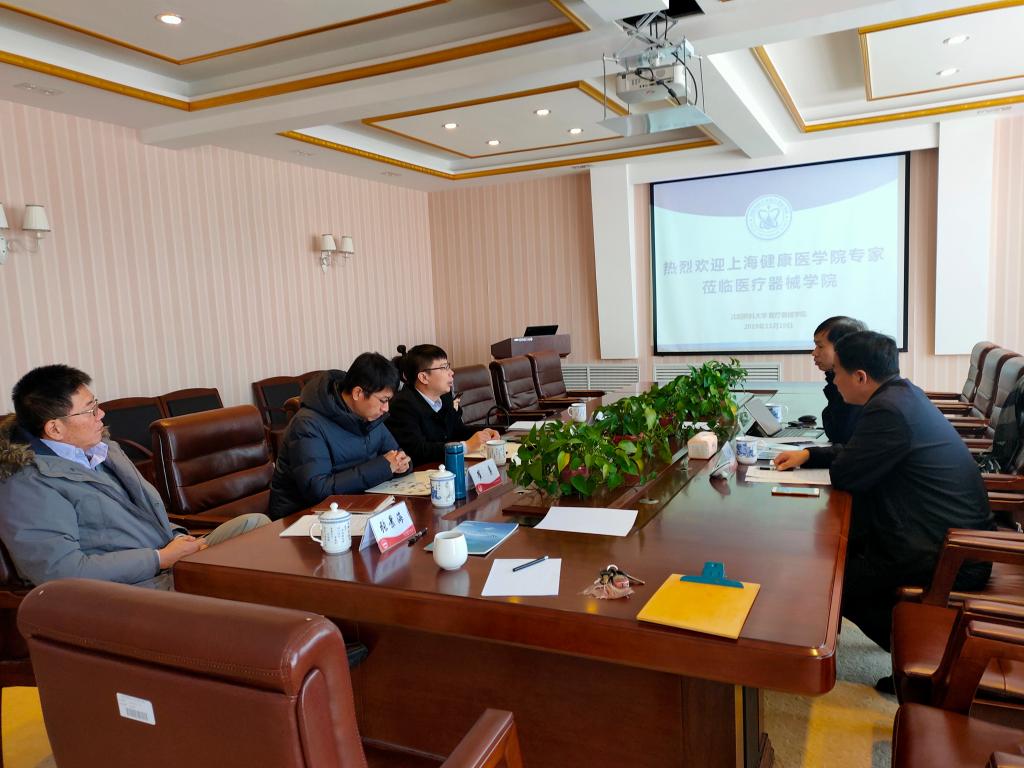 11月19日,上海健康医学院医疗产品管理系主任蒋海洪和朱文明老师应邀来bat365进行调研。会议由学院副院长崔勇主持,学院院长张景海,教务处副处长、学院副院长项荣武,工商管理学院副院长黄哲出席了会议。
