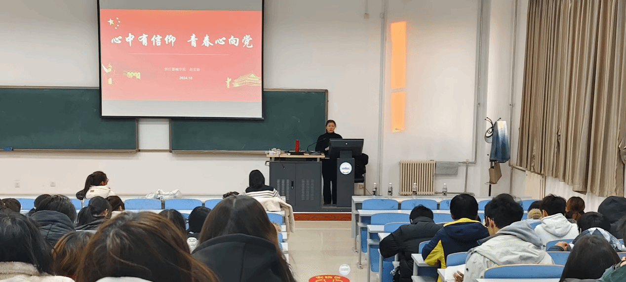 学院党委组织员朱辉向同学们介绍了发展党员流程,从递交入党申请书到成为正式党员,帮助同学们了解党员发展的详细步骤和重要意义。