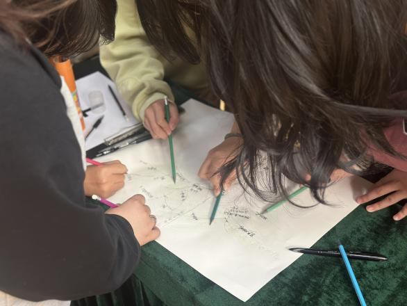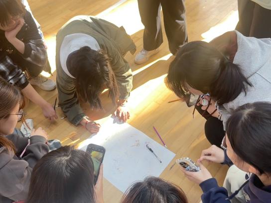 活动的高潮部分当属“绘制生命树”环节,每个小组需要在规定时间内在一张白纸上画一棵独属于自己小组的树,其中的树根,树干,树枝,树叶和果实都要与自己相关,最后进行展示和交流。在此过程中,同学们纷纷展示自己的想法,一张小小的白纸上有了每一个同学的影子;在展示环节上,每个小组骄傲地举起自己的作品并喊出自己的口号,现场气氛达到了顶点,这一刻同学们之间的凝聚力达到了鼎峰,赢得了在场老师和其他小组的阵阵掌声与喝彩;通过视觉化的隐喻,让树的各个部分代表生命的不同元素,连接过去、现在和未来;让同学们感受团体中自己与周围重要伙伴的相互影响,展示各个小组旺盛的生命力。