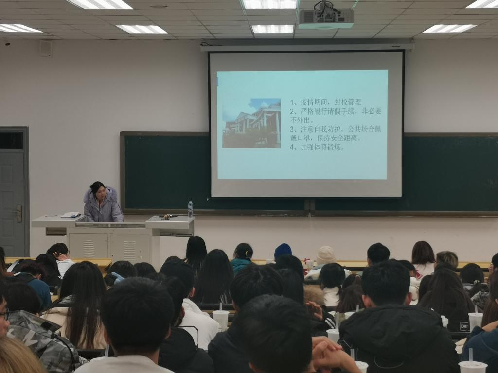 为加强大学生安全意识,增强大学生社会认知能力,2021年11月26日,本科生辅导员王运佳在全体本科新生中开展安全教育及校规校纪教育。
