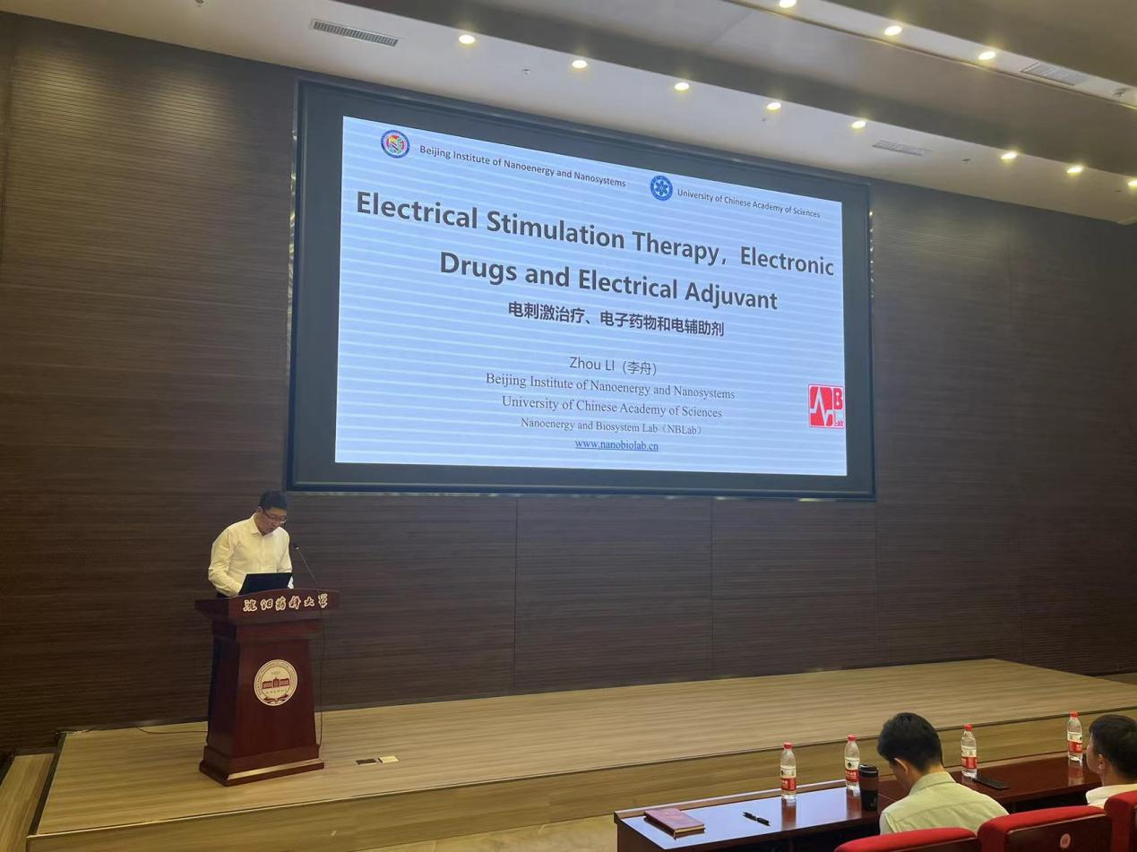 7月5日,由研究生院、辽宁省药学研究生创新与学术交流中心、bat365中文官方网站联合举办的“沈药无涯论坛”第351讲——李舟研究员学术报告会于南校区校史馆报告厅如期举行。会议邀请到中科院北京纳米能源与系统研究所所长助理,中国科学院大学教授李舟研究员做题为《电刺激治疗、电子药物和电辅助剂》的学术报告。报告会由bat365中文官方网站党委书记吴恩华主持,150余名师生参会学习。