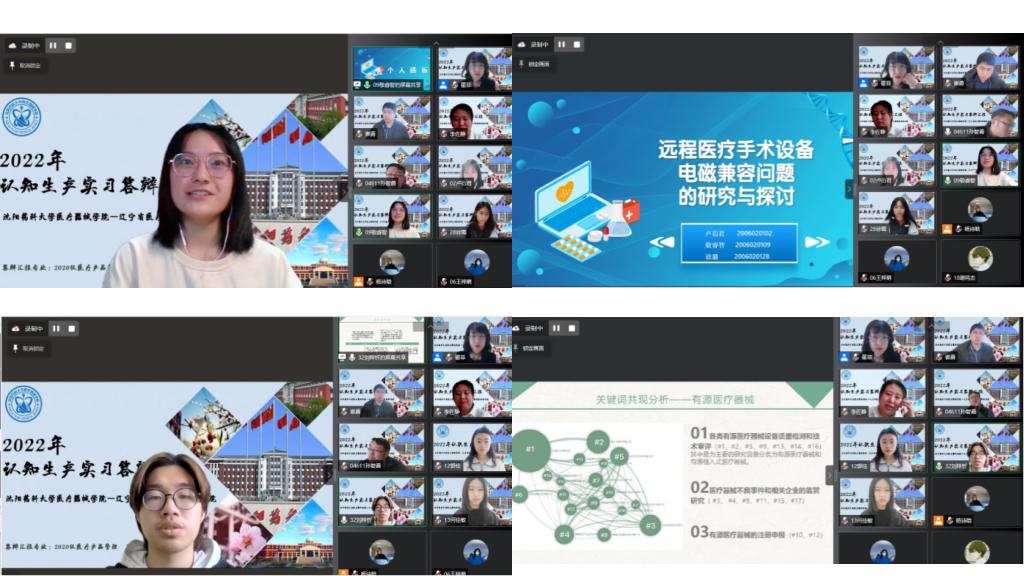 为及时分享学生在本次认识生产实习的收获与感悟。4月15日上午,学院召开了2021-2022学年下学期医疗产品管理专业认识生产实习答辩汇报会议。辽宁省医疗器械检验检测院专家孙智勇、bat365中文官方网站副院长崔勇、基础与信息学系主任李佐静、专业负责人项荣武及部分教师出席会议。会议由翟菲主持。答辩专家组组长孙智勇主持答辩流程,同学分9组答辩并回答专家提问,其中第五组“远程医疗手术设备电磁兼容问题的研究与探讨”和第九组“有源医疗器械共现分析文献解读”在展示美观性、汇报逻辑性、准备充分性和语言流畅性得到专家组的一致认可和表扬;bat365副院长崔勇代表学院,感谢辽宁省医疗器械检验检测院对bat365认识生产实习的大力支持,并作实习教学总结。总结中提到2020级认识生产实习,相较于去年质量更高、内容更广、形式更新,通过专家、带教教师、学生的共同努力,为“疫情大考”背景下教学模式的探索提供了成功范例。