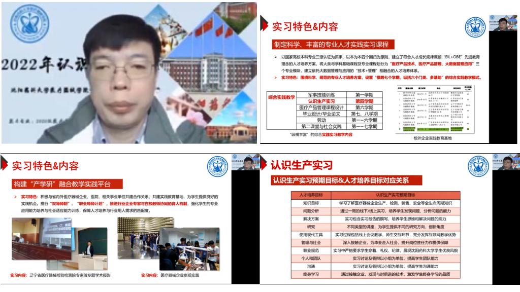 此次线上认识生产实习,同学们通过与辽宁省医疗器械检验检测院和带教教师“双渠道”的交流,深入了解了医疗器械产品的全生命周期过程,完成了从“基础学科角色”向“专业角色”的转变,为未来专业知识学习、应用能力强化、社会适应力提升奠定了坚实基础。