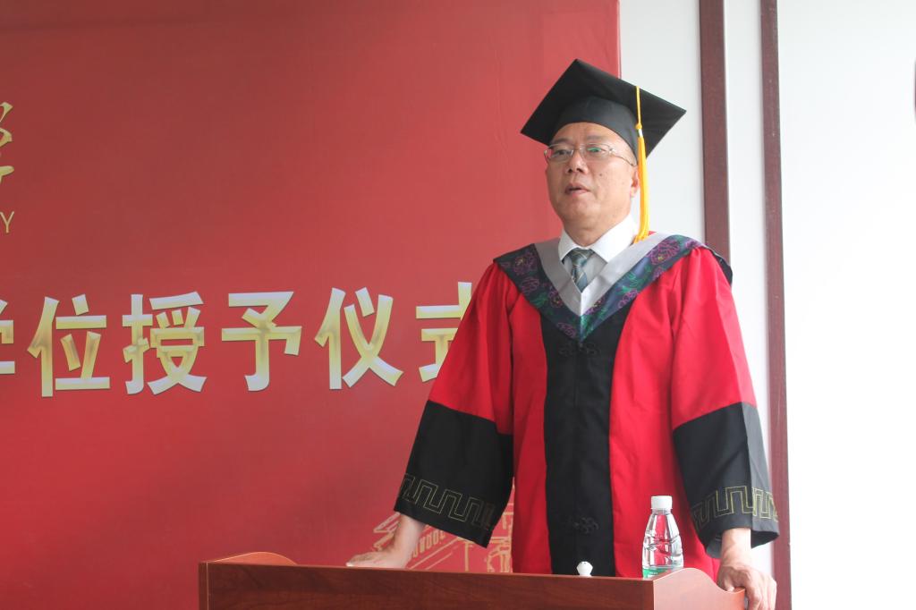 受学校学位委员会委托,副院长项荣武宣读唐娜等17名同学授予硕士学位的决定。副院长崔勇宣读李一波等51名同学授予学士学位的决定。