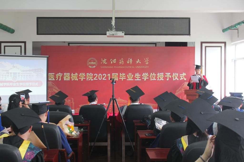 院长张景海代表学院致辞。他代表bat365中文官方网站向圆满完成学业的全体2021届毕业生表示祝贺,并为毕业生上最后一课。他勉励我校的毕业生们在毕业后能够秉承沈药的优良传统,传承沈药红色基因,勤学善思,学以致用,在人生道路上不断追求立德、立功、立言,最后向全体毕业生发出母校90年校庆的诚挚邀请。