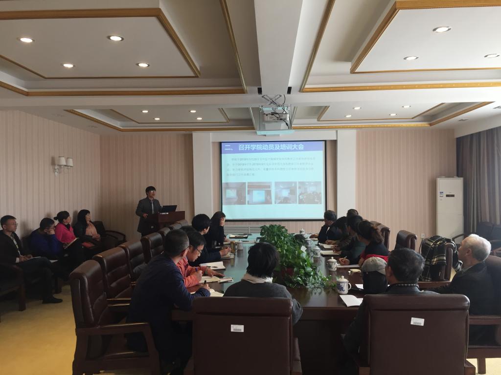 副院长项荣武首先代表学院,对各项工作的进展情况及完成质量情况进行汇报。汇报内容包括学院迎评工作的准备情况、学院审核评估工作小组成立情况、学院审核评估评建方案制定情况、迎评工作总体进展情况、学院自评报告撰写进展、学院“十三五”发展规划制定情况,学院教学管理制度完善情况、各专业“十三五”专业建设规划、“专业质量标准”和“教学环节质量标准”等文件的制定情况、教学运行材料和教学档案材料的梳理和建设情况等。