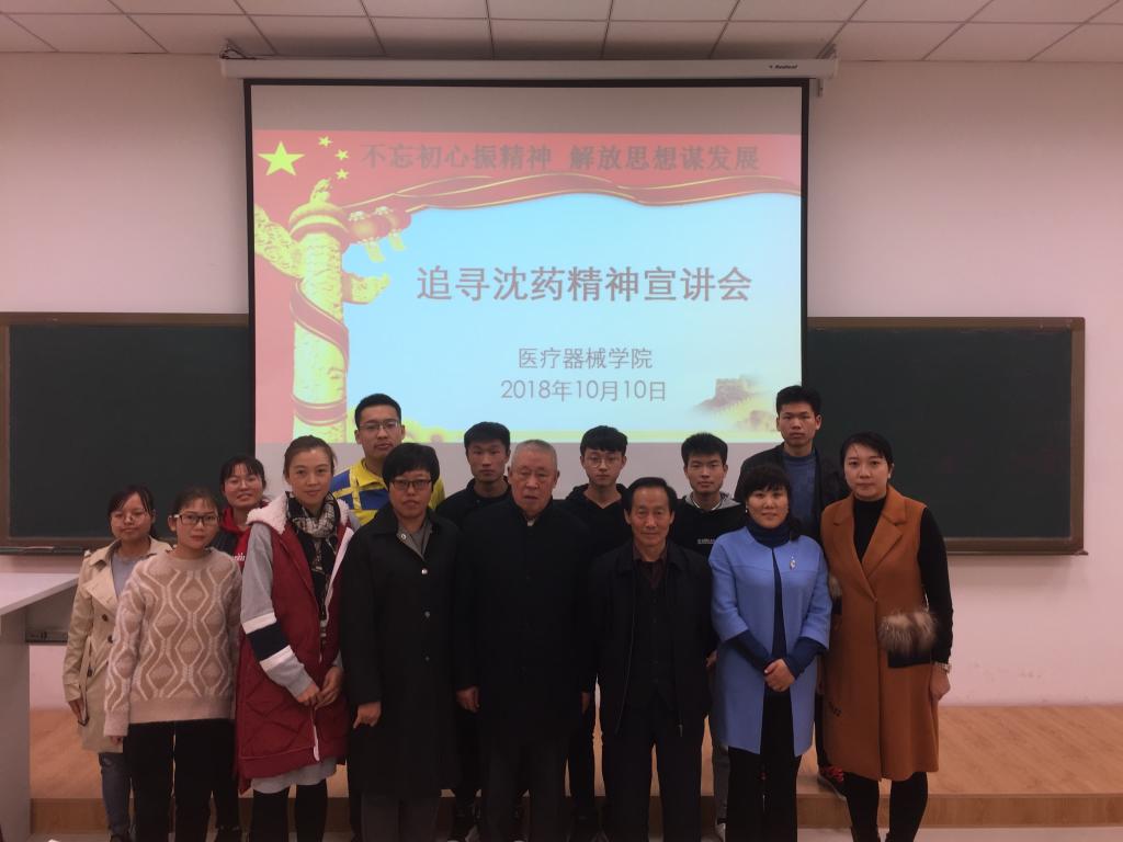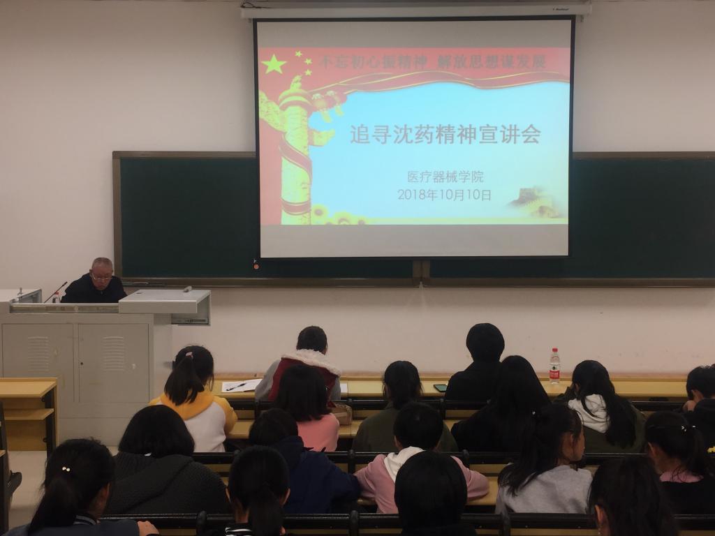 10月10日,bat365中文官方网站在南校区第四教学楼404教室举办了“不忘初心振精神 解放思想谋发展——追寻沈药精神”主题宣讲会。本次宣讲会与校关心下一代工作委员会联合举办,特别邀请到校关工委常委副主任、原bat365中文官方网站党委书记王发,校关工委“五老”成员、原bat365中文官方网站成人教育学院院长、学生处处长张殿发老师担任主讲。学院党委书记李哲、党委副书记李秋萍和全体辅导员老师、学院全体本科生参加了此次学习活动,宣讲会由院党委副书记李秋萍主持。