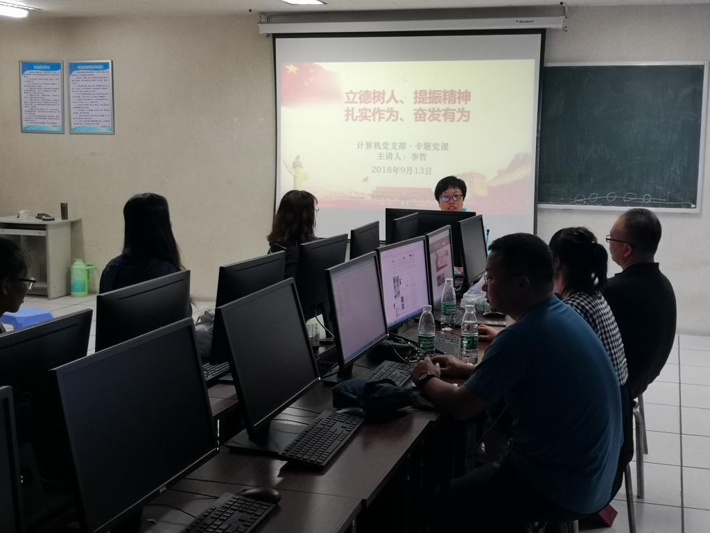 9月13日,bat365中文官方网站党委书记李哲在校本部计算机房为计算机党支部上题为《立德树人 提振精神 扎实作为 奋发有为》党课。