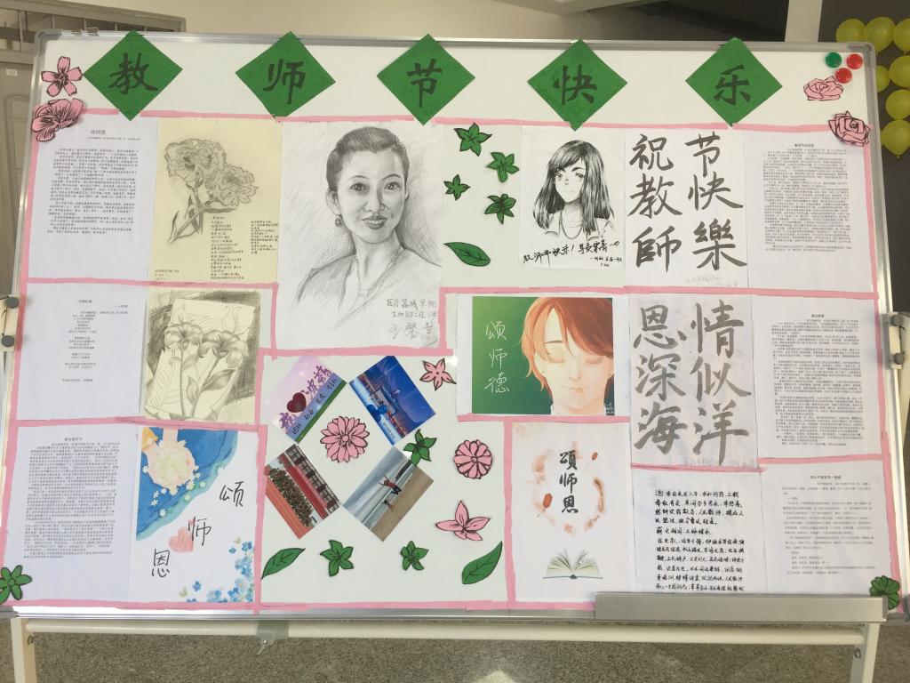 在一周的活动安排之中,同学们热情高涨、积极地参与到活动中,上报的征文、书画、摄影、线上祝福等作品异彩纷呈。在“颂师恩”征文活动中,同学们借文抒情,用细腻的笔触回忆了求学路上老师的风雨相伴,用真挚的情感表达了对老师的感恩之情。在“师恩难忘”黑板报活动中,同学们创作出一幅幅温暖人心的板报,内容生动丰富,情感真挚深沉,构思巧妙精致,色彩缤纷靓丽。每一幅画、每一个字都诉说着学生对老师深深地感激之情,是学生送给老师最好的礼物。83期王馨慧同学和85期新生胡丽同学的素描画像细腻,灵动地展现了老师的风貌;83期陈鹿华和潘泓的书法挥斥方遒,祝福老师们节日快乐;83期李心舒和84期何正钰的手绘作品也充分展示了学生们对老师的敬爱之情。此外还有一系列的征文也排列展示在了bat365中文官方网站正厅的展板上。在院学生会和学院同学的共同努力之下,活动展览如期在教师节当天与师生见面。