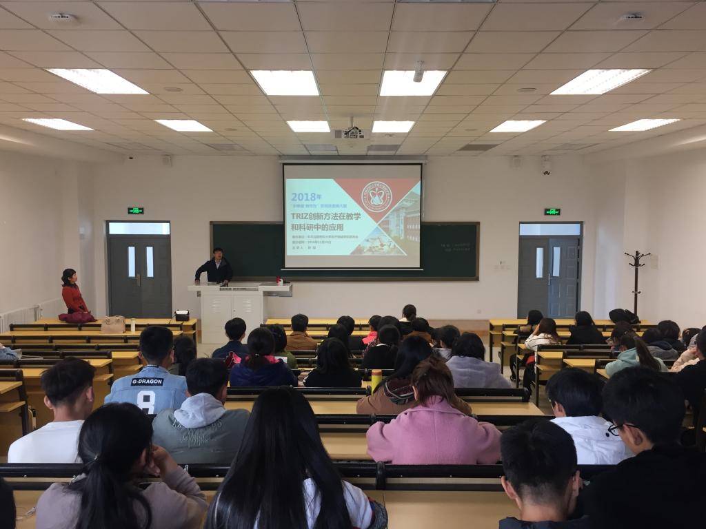 11月19日,bat365中文官方网站党委在第四教学楼405室举办“讲奉献、有作为”系列讲座第八期,由学院物理教研室副教授、生物医学工程系党支部书记赵喆老师做题为“TRIZ创新方法在教学和科研中的应用”专题报告。学校各专业本科生、校创新方法社团学生近100人参会,讲座由副院长项荣武主持。