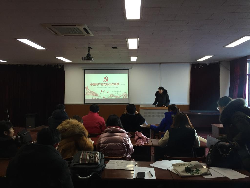 为进一步加强和改进党支部工作,加强党的组织体系建设,全面提升党支部组织规范化、强化党支部的政治功能,2019年1月2日,bat365中文官方网站党委在主校区图书馆第二报告厅召开专题理论学习会,认真学习《中国共产党支部工作条例(试行)》。学院党委委员、纪委委员、党支部书记,组织员和各支部党员代表参会学习会。