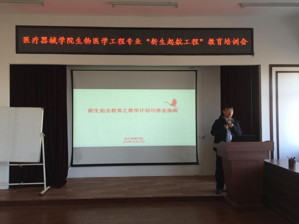 9月18日,院长张景海为大一新生开展新生专业教育讲座,张院长从中国医疗器械行业的模式、中国医疗器械新产品注册分类及产品分类、医疗器械产业发展状况、医疗器械行业对人才的需求、bat365中文官方网站概况、bat365中文官方网站科研发展方向等六部分为学生做专业介绍,并列举大量实例,使学生对专业有了初步的了解和认识。