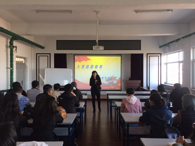 10月16日,学院党委副书记李秋萍对新生进行了入党启蒙教育,此次入党启蒙教育使同学们进一步了解了中国共产党及入党事宜,帮助同学们端正了入党动机,树立了正确意识,同学们感触颇深。对党有了进一步的认识,对党员思想有了进一步的了解。通此次讲座激发了同学们的入党热情,端正了入党动机,引发了同学为什么入党的思考。