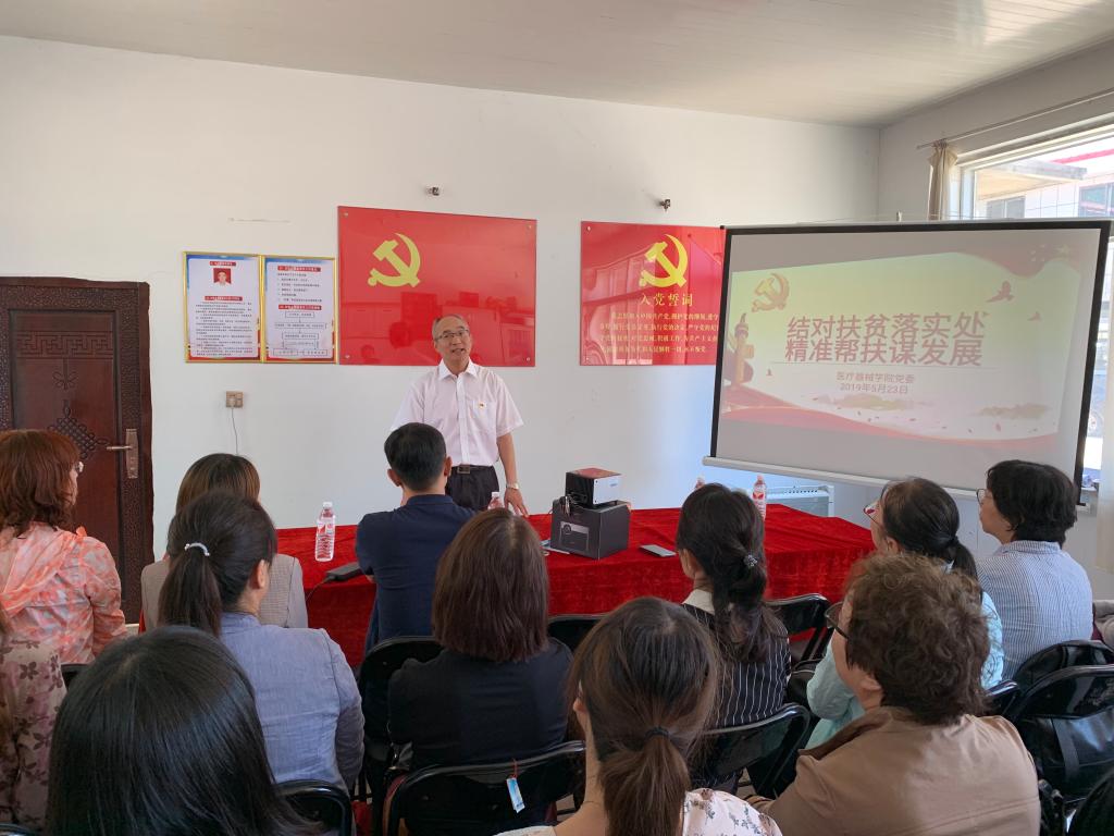根据前期调研情况,针对贫困村提出的突出问题和疑问,学院党委专门邀请中药学院刘玉章副教授参加本次活动。刘玉章老师在了解情况后,第一时间着手安排相关工作,并于活动当天对当地土地进行取样,为开发规模种植中成药条件进行调研,回答了农民提出的相关技术问题,并为村民做“呵护健康春常在,助力脱贫奔小康”科普讲座。