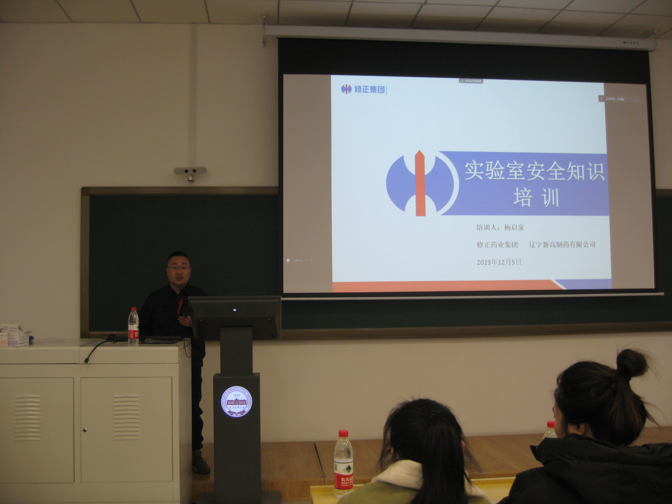 培训会邀请了修正药业集团辽宁新高制药有限公司质量副总杨启家做报告。杨启家首先从高校实验室事故典型案例分析入手,强调了实验室安全意识的重要性。他指出麻痹大意,不学习安全基本知识,不按实验安全规则操作,是实验安全工作中最大的敌人。他进一步从电、水、火的管理与使用、化学药品规范放置、常用试剂的使用注意事项及常见事故的处理方法、废液的科学处理、仪器规范使用、实验安全操作规程等方面展开,深入浅出的讲解了实验室安全细则。他有针对性地指出了防火、防毒、防爆、防灼伤、防盗等安全预防措施。最后他强调只有安全的态度才能决定安全的行为;安全的行为逐渐形成安全的习惯;安全的习惯塑造安全的性格;安全的性格成就美丽的人生。